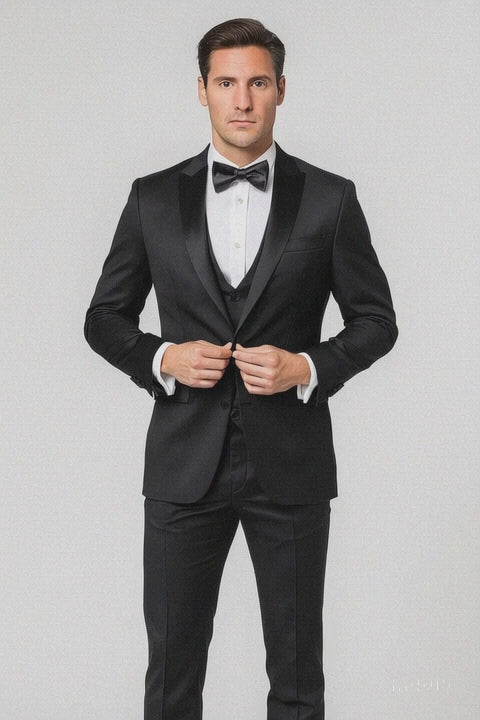 Black Slim Fit Satin Tuxedo β Four Piece Set
