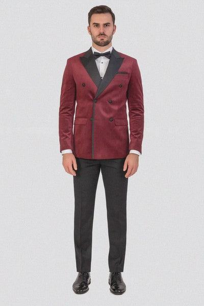 Burgundy Velvet Double Breasted Tuxedo Jacket – Wedding & Prom