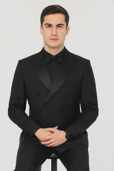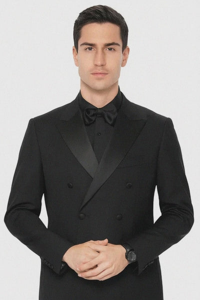 Black Double Breasted Slim Fit Tuxedo Peak Lapel - Wedding - Prom