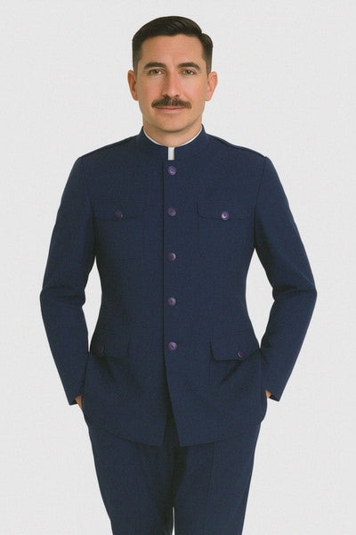 "Exquisite Prom and Wedding Attire: Apollo King Navy Safari Banded Suit for Unforgettable Occasions"