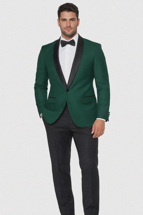 Green Tuxedo Jacket with Black Satin Shawl Lapel – Slim Fit