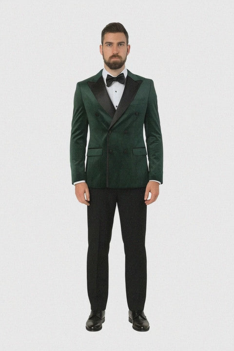 Green Velvet Double Breasted Tuxedo Jacket – Wedding & Prom
