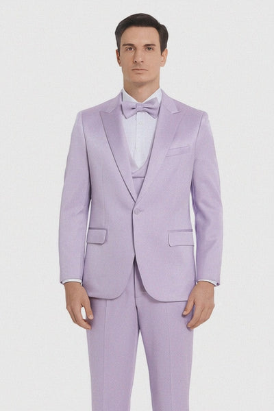 Lavender Satin 3 Piece Slim Fit Tazzio Men's Suit with Peak Lapel Jacket – Modern Design