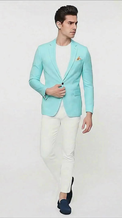 Stand out with confidence in this men’s aqua blazer, designed for the modern gentleman who values both style and sophistication. The slim-fit cut provides a sharp, tailored look, while the single-button closure adds a sleek and contemporary touch. What makes this blazer unique is the vibrant floral inner lining, adding a bold contrast that shows off your personality and sense of fashion. Perfect for weddings, parties, formal gatherings, or even smart-casual outings, this blazer is versatile enough to elevate any outfit. Crafted from high-quality fabric, it offers comfort, durability, and an elegant finish. Pair it with dress pants, chinos, or even jeans for a fashionable look that makes a statement.