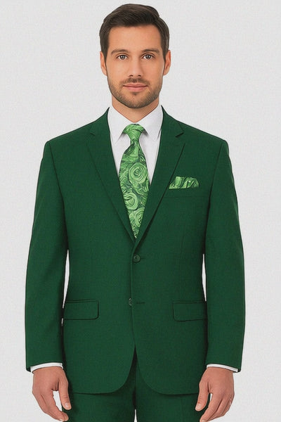 Mens 2 Button Classic Fit Basic Poplin Emerald Green Suit
