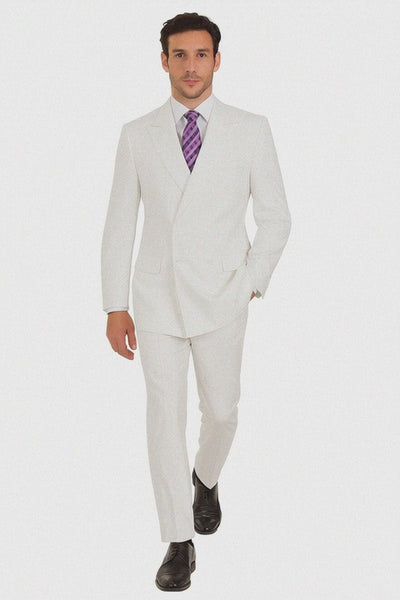 Step into timeless elegance with our Men’s Classic Double Breasted Poplin White Suit, a refined choice for weddings, summer events, and formal occasions. Crafted from lightweight poplin fabric, this suit delivers a polished look with maximum comfort—ideal for men who value both style and sophistication.