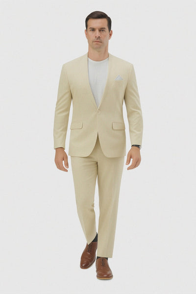Mens Two Piece Linen Suit Relaxed Hybrid Fit No Collar