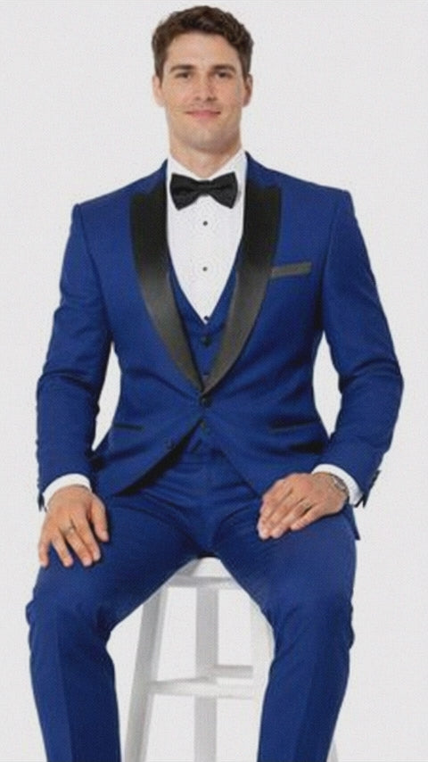 Royal Blue Tuxedo with Black Peak Lapel Slim Fit - Wedding - Prom