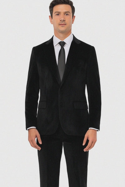 Tazzio Men’s Black Velvet Formal Suit – Slim Fit Peak Lapel Tuxedo 2-Piece