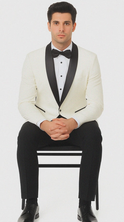White Slim Fit Tuxedo with Black Shawl Lapel – Wedding & Prom